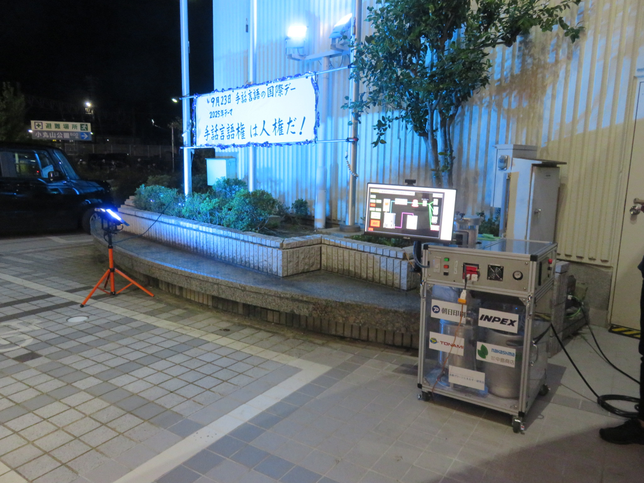 9月23日に石川県七尾市にて「手話言語の国際デー」に合わせ、エ小僧SMARTを使用した「ブルーライトアップイベント」を実施しました。